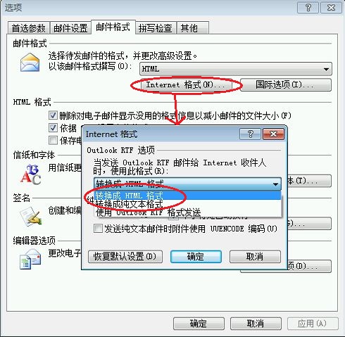 · 點擊“Internet格式” -〉選擇“轉換成HTML格式”或 “轉換成純文本格式”