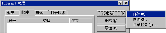 單擊'添加'按鈕,從彈出的菜單中選擇'郵件'選項將彈出Internet連接向導;
