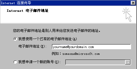 6.在彈出的窗口中輸入您的郵箱地址.例如yourname@yourdomain.com