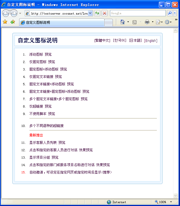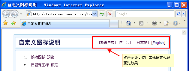 如果您想使用其他語言代碼及預覽效果可以點擊各其他語言按鈕。如(圖3);