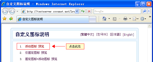 一、下面,我們以最常使用的浮動圖標代碼為例,為大家演示測試功能