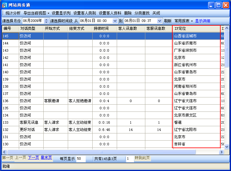 • 您可以立即直觀的看到您的訪客來自于那個地區以及相應的對話情況,如(圖2);