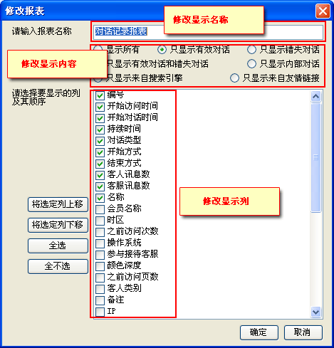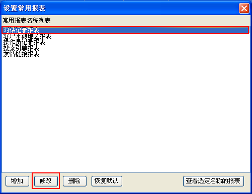 • 點擊原有的“對話記錄報表”對其內容進行修改您可以選擇“修改”,如果不需要此報表可以選擇“刪除”。如(圖4);