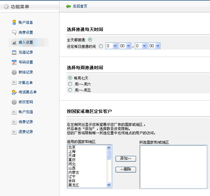 • 在下圖界面設置好通話時間和地區, 如(圖3);