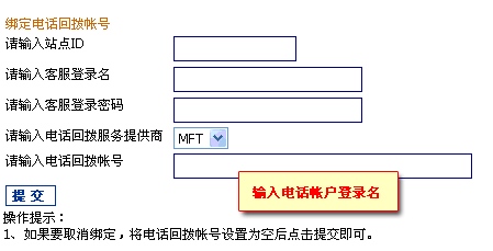 • 備注:如果客服修改網站商務通登陸賬戶,需要在此重新綁定一下電話賬戶才能生效。