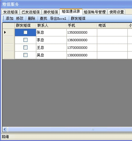 2. 網站商務通客服后臺,有發送短信功能及群發通訊錄的功能,方便您隨時給自己的朋友或客戶發送短信。如(圖2);