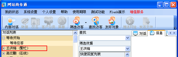 確認之后此時當前客服人員的狀態為“繁忙”,如(圖3);