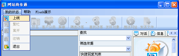 - 首先登錄網(wǎng)站商務(wù)通(LR)軟件,點擊“我的狀態(tài)”菜單項,如(圖1);