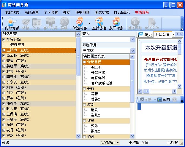 - 登陸后的網(wǎng)站商務(wù)通(LR)軟件操作界面 ,如(圖4)