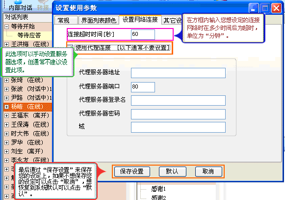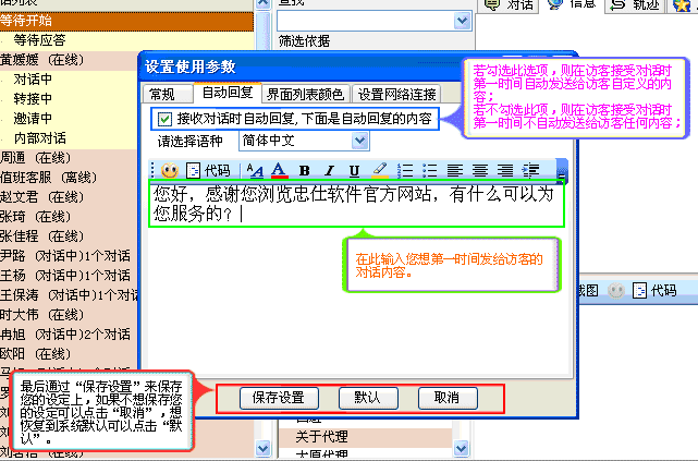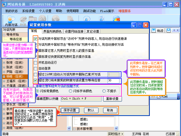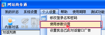 1. 登陸網站商務通軟件,在個人設置菜單項點擊使用參數設置,如(圖1);