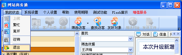 • 在“我的狀態”的下拉菜單中選擇“退出”,如(圖1);