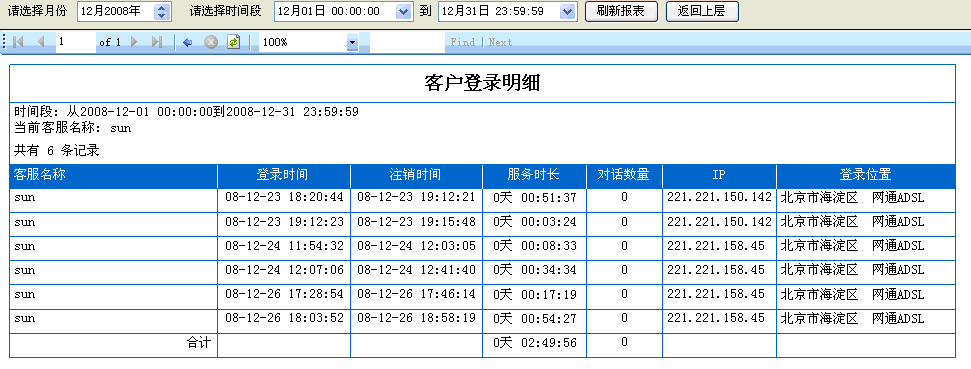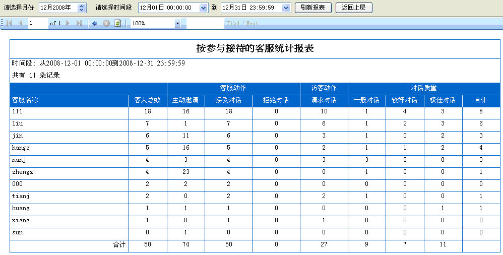 6. 按參與接待的客服統(tǒng)計對話:所有參與訪客對話的客服數(shù)據(jù)統(tǒng)計報表,如(圖4);