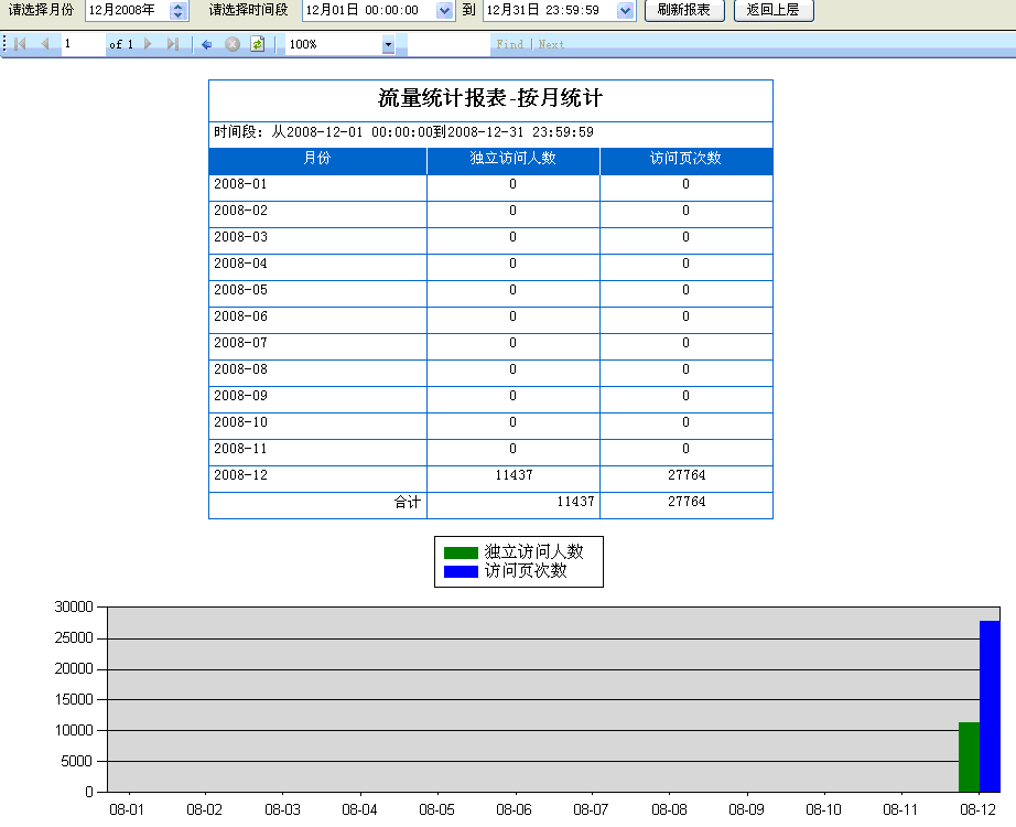 16. 按月統(tǒng)計:一年之內(nèi),每個月軟件在線狀態(tài)時訪問客人的數(shù)據(jù)統(tǒng)計,如(圖13);