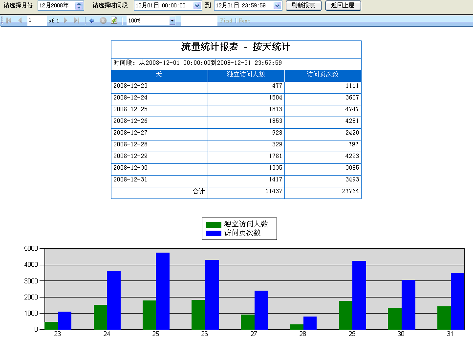 17. 按天統(tǒng)計:一個月之內(nèi),每個天軟件在線狀態(tài)時訪問客人的數(shù)據(jù)統(tǒng)計,如(圖14);
