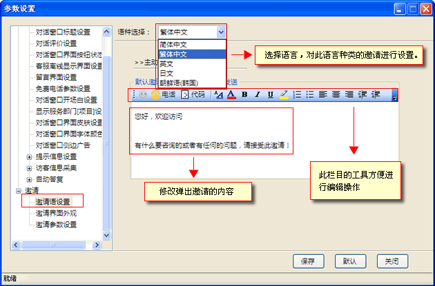 主動邀請能有效拉近和訪客的距離,設置的邀請內容更人性化打動訪客接受邀請和客服進行交流。對邀請界面進行針對性的設置,讓訪客能夠第一時間接受對話和您洽談業務。