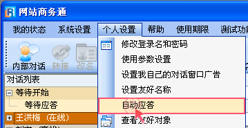 • 在個人設置下拉菜單中選擇“自動應答”, 如(圖1);