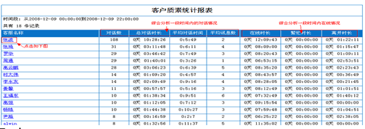 1、 客服質素報表可以分析客服人員每天的在線時間 總體對話數(shù)、平均對話數(shù)和對話時長以及是否經(jīng)常離開座位及離開的總體時間,甚至可以了解到客服人員是否在公司登陸的軟件。