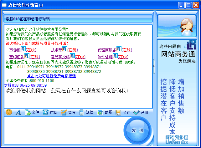 思為網絡作為四川成都地區授權代理商,為您提供網站商務通網站客服軟件免費試用,新開用戶、續費服務,網站商務通產品為大連忠仕推出一款網站在線客戶實時交流軟件產品,網站商務通提供免費試用服務。網站站商務通最新下載,成都網站商務通在線購買。咨詢熱線:028-86080655