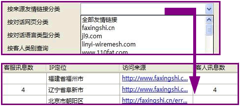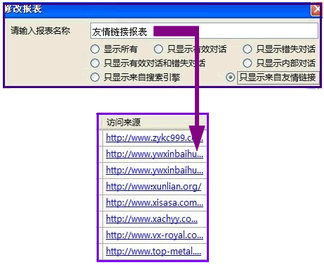 2.可以把所有來自友情鏈接的對話導出一個報表,可以讓企劃人員更直觀的評價友情鏈接的對話效果以及客服的接待質量。