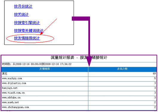 通過友情鏈接報表統計可以看到您在別的網站上做別的廣告的有效點擊率是多少,是你衡量廣告效果的一個參考方式。